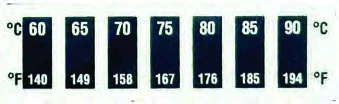 | 26901 | °F 86 95 104 113 122 131 140 °C 30 35 40 45 50 55 60 | 10 Pack | 26903 | °F 140 149 158 167 176 185 194 °C 60 65 70 75 80 85 90 | 10 Pack |